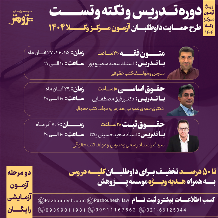 اخبار وکالت و قضاوت سردفتری ارشد و دکتری
